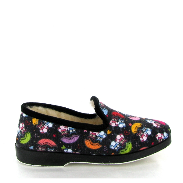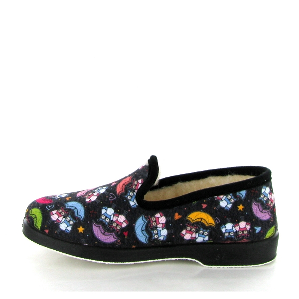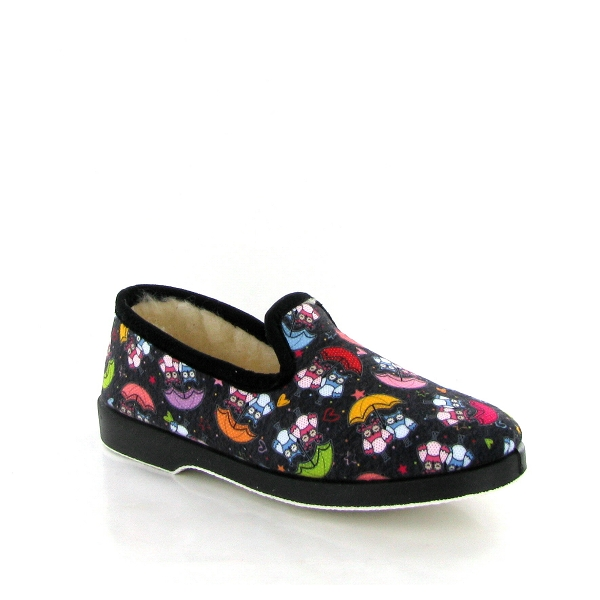 Votre pantoufle femme en velours noir imprimé hiboux,