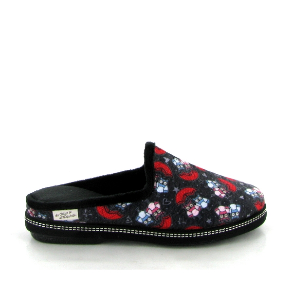 Votre pantoufle femme en velours noir imprimé hiboux,