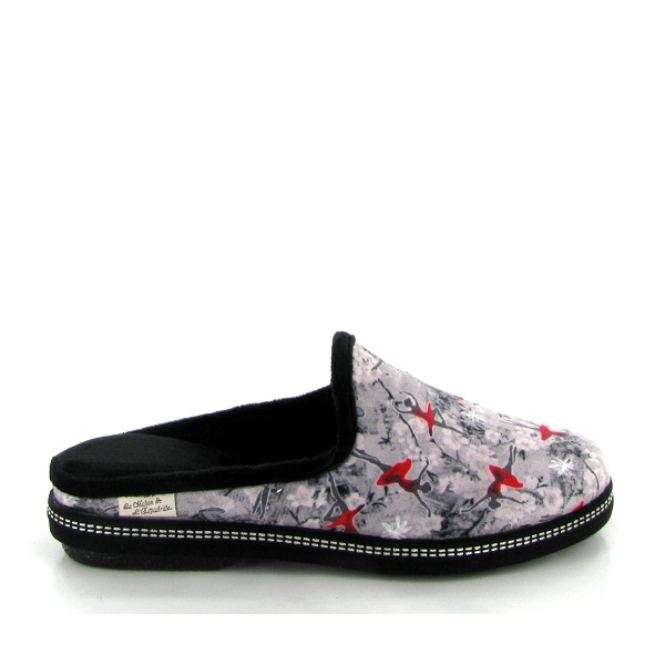 Votre pantoufle femme en velours gris imprimé danseuse,