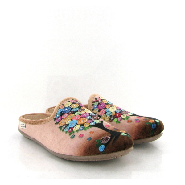 Votre pantoufle femme en velours baige imprimé arbre de vie,