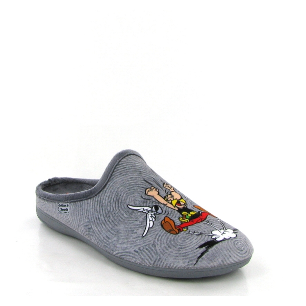 Votre pantoufle homme en textile velours gris motif Astérix et Obélix,