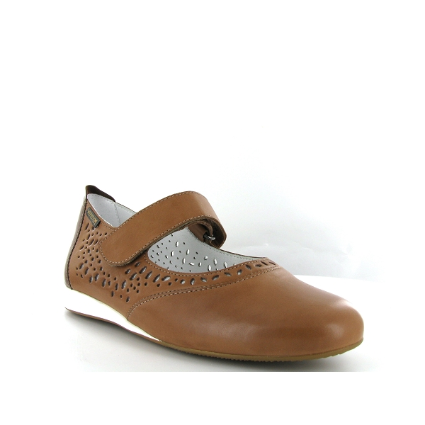 A découvrir chez Breuil chaussures, Ballerine à bride Beatrice cuir beige/marron de chez Mephisto de fabrication française.