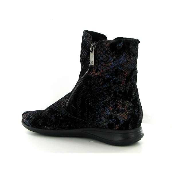 Bottines à zip en cuir noir, motif écaille, très confortables, marche parfaite avec sa semelle étudiée pour garder votre pied maintenu tout au long de votre journée.