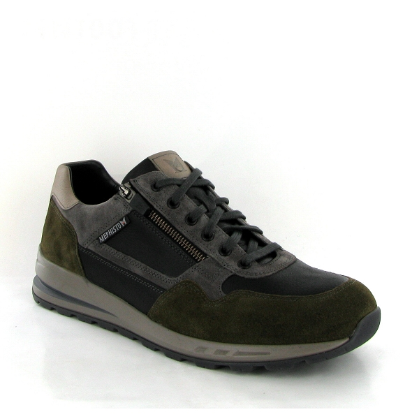Votre Mephisto tennis homme en cuir kaki ajustable avec un lacet et une fermeture éclair.