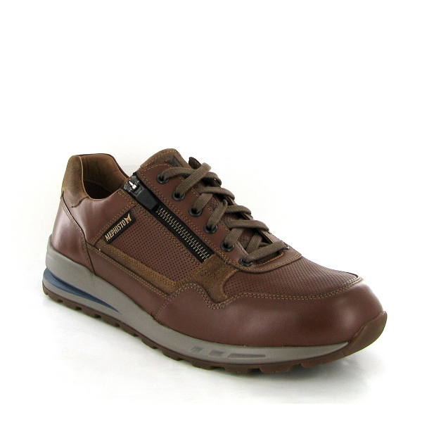 Votre Mephisto tennis homme en cuir marron ajustable avec un lacet et une fermeture éclair.
