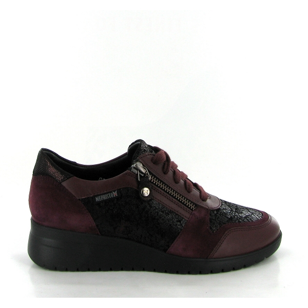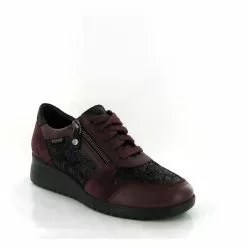 Votre Mephisto tennis femme en cuir bordeau ajustable avec un lacet et une fermeture éclair vous acompagnera au quotidien.