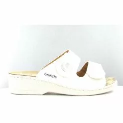 Mule femme Rosana en cuir blanc de chez Mephisto de fabrication française.