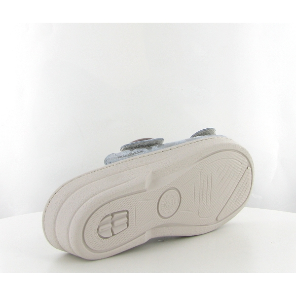 Nu pieds bleu ciel Ă double velcros, qui chaussent large;