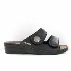Mule femme Rosana en cuir noir de chez Mephisto de fabrication française.