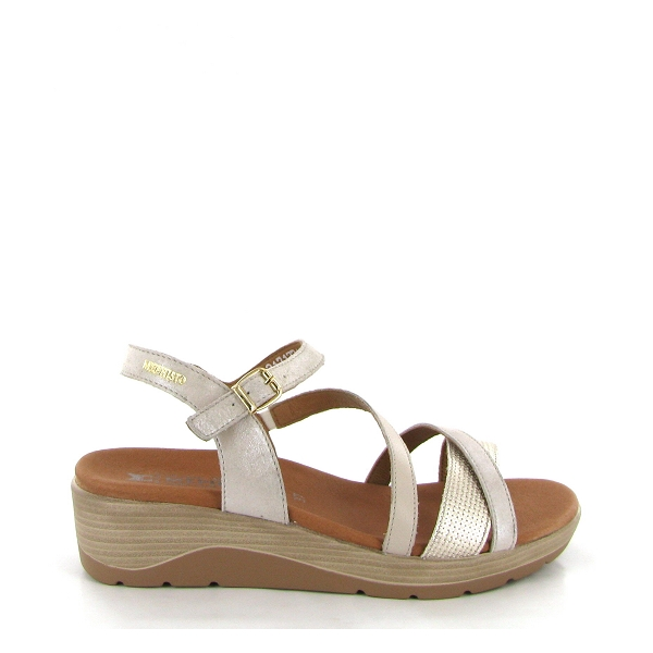 Votre Mephisto nu-pieds femme en cuir beige avec un talon compensé vous accompagnera dans votre quotidien.