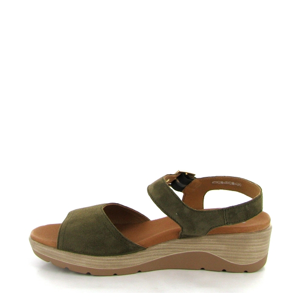 Votre Mephisto nu-pieds femme en nubuck kaki avec un talon compensé vous accompagnera dans votre quotidien.