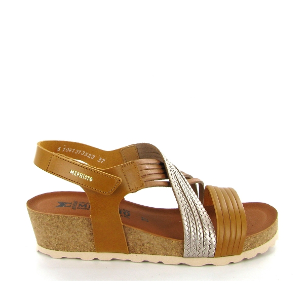 Votre Mephisto sandale femme en cuir lisse beige et doré vous acompagne au quotidien avec sa bride réglable à velcro.