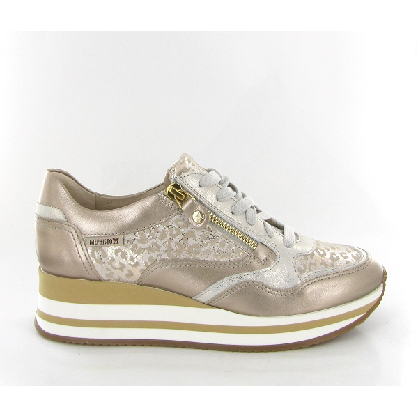 Votre Mephisto tennis femme en cuir doré vous acompagne au quotidien avec son lacet et sa fermeture éclair.