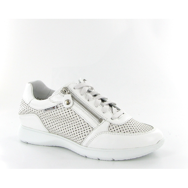 Votre Mephisto tennis femme en cuir blanc perforé ajustable avec un lacet et une fermeture éclair vous acompagnera au quotidien.